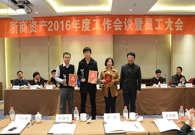 會議第二項議程為表彰年度先進集體及先進個人,杭州業(yè)務三部、法律合規(guī)部獲得了先進集體的榮譽,錢烈、毛倩瑩、翟峰等獲得了先進個人的榮譽。