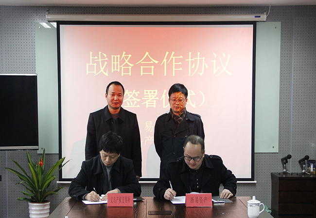 2016年2月4日,浙易資產(chǎn)與義烏市產(chǎn)權(quán)交易所簽訂戰(zhàn)略合作協(xié)議,浙易資產(chǎn)董事長朱巧偉、總經(jīng)理曹晨及義烏產(chǎn)交所總經(jīng)理趙秋明、副總經(jīng)理陳喜忠出席。