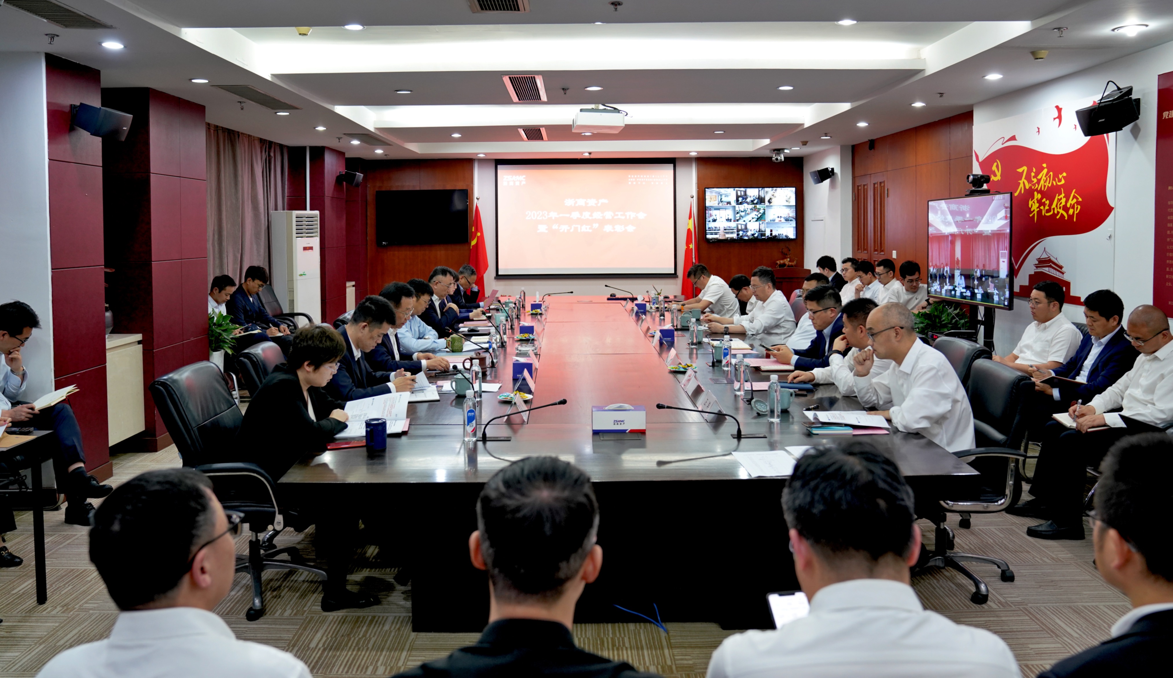 4月21日下午,浙商資產(chǎn)順利召開2023年一季度經(jīng)營(yíng)工作會(huì)暨“開門紅”表彰會(huì)。會(huì)議系統(tǒng)總結(jié)一季度經(jīng)營(yíng)工作情況,深入研判當(dāng)前形勢(shì),部署二季度重點(diǎn)工作任務(wù),并舉行了2023年“開門紅”表彰。公司領(lǐng)導(dǎo)班子成員、業(yè)務(wù)副總經(jīng)理,各分公司、成員公司主要負(fù)責(zé)人以及本級(jí)中后臺(tái)部門負(fù)責(zé)人在現(xiàn)場(chǎng)參會(huì),公司全體員工通過(guò)視頻參會(huì)。浙商資產(chǎn)黨委副書記、總經(jīng)理李偉達(dá)作一季度經(jīng)營(yíng)工作報(bào)告,黨委副書記、工會(huì)主席陳霖宣讀“開門紅”表彰,黨委委員、副董事長(zhǎng)、首席戰(zhàn)略官李傳全主持會(huì)議并作二季度經(jīng)營(yíng)策略安排,黨委委員、常務(wù)副總經(jīng)理王賚通報(bào)公司重點(diǎn)工作機(jī)制安排。