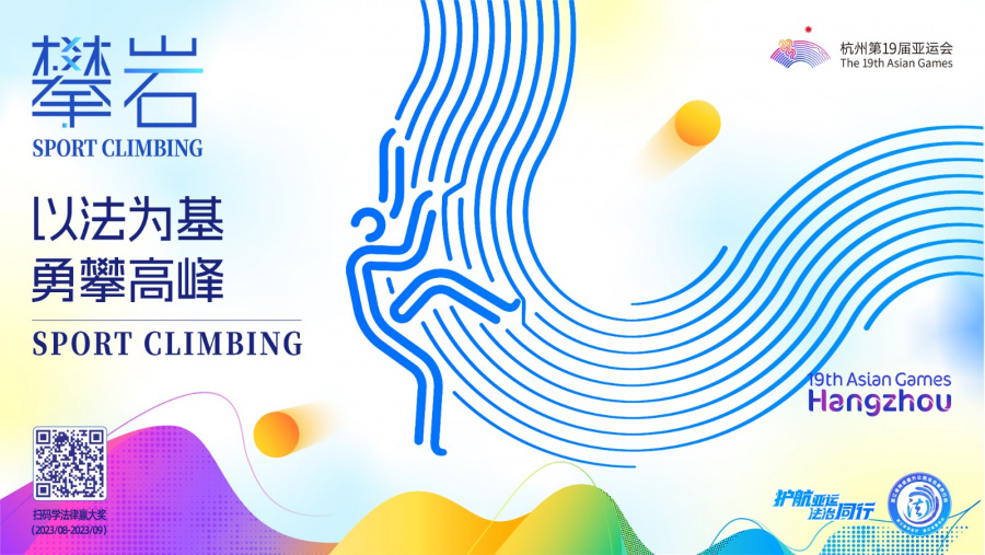 配套海報(bào)從擊劍、蹦床、籃球、舉重、田徑、攀巖、游泳、賽艇等比賽項(xiàng)目中提煉出法治元素,使亞運(yùn)和法治產(chǎn)生關(guān)聯(lián)和共鳴。