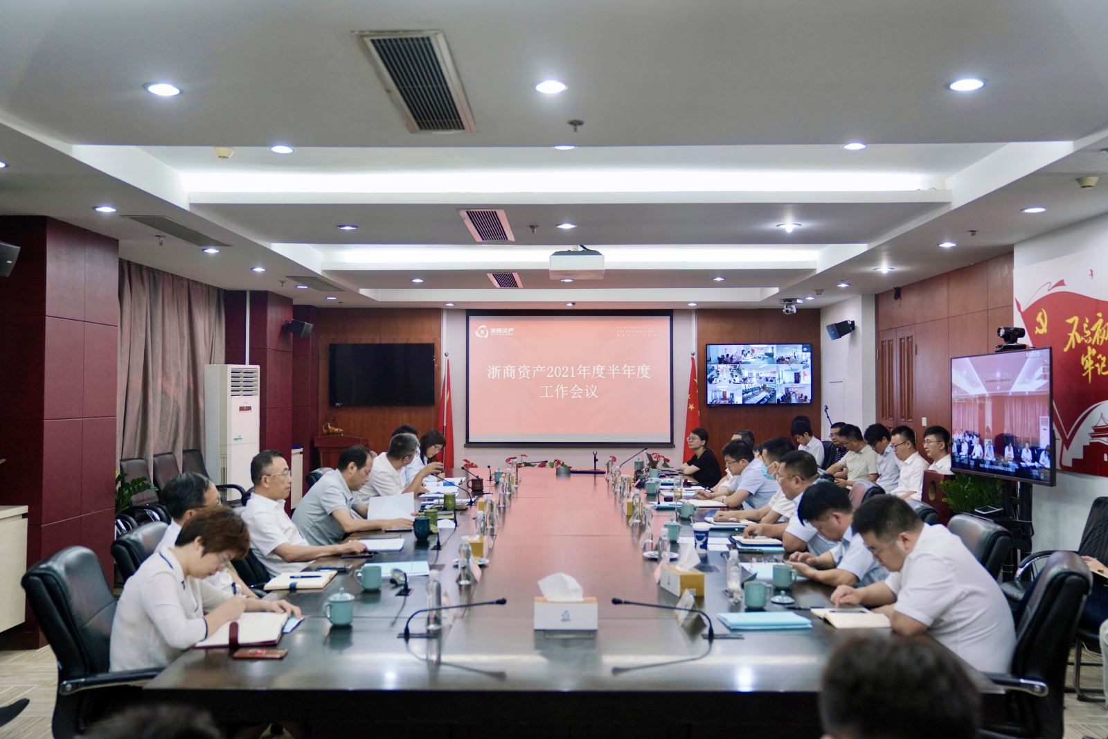 7月23日,浙商資產(chǎn)召開2021年半年度工作會議。會議回顧總結(jié)了2021年上半年經(jīng)營管理取得的成績,研判分析形勢,并安排部署下半年重點(diǎn)工作。本次會議采取“現(xiàn)場+視頻”形式,浙商資產(chǎn)領(lǐng)導(dǎo)班子及業(yè)務(wù)副總,浙商資產(chǎn)本級及成員公司全體員工(含浙北、浙越、金玨、浙商藍(lán)綠、浙商正諫,億利達(dá)派代表)、浙商資產(chǎn)外派人員等共計(jì)近600人參加會議。浙商研究院、財(cái)務(wù)、運(yùn)管、風(fēng)控等分別從各自條線做了半年度情況分析報(bào)告。會議由公司黨委委員、常務(wù)副總經(jīng)理兼首席戰(zhàn)略官李傳全主持。